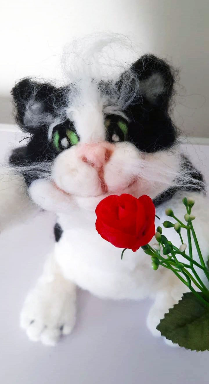 Un joli cadeau pour tout amoureux de chats et un beau décore pour votre maison. La figurine est feutré à la main.